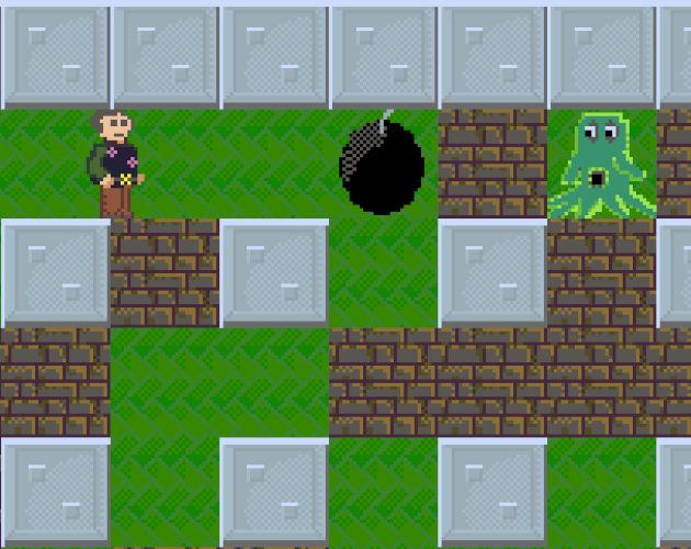 Multiplayer Action/Puzzle Game (In Development): Players must strategically battle each other by planting bombs to destroy blocks and eliminate opponents.